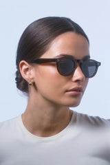 This frame is handcrafted with bio-acetate which makes it plant-based and biodegradable. To ensure the frames longevity, it is made with laminated hinge beds and wire temple cores.