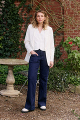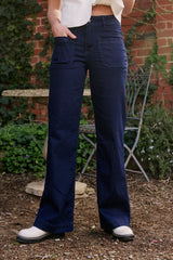 • Tailored fit• high-rise waist• 2% elastane• Dark blue denim• Straight, full length leg• Belt loops• Zip fly• Patch pockets on front• Welt pockets on back