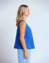 Sleeveless A line tank with contrast button placket fastening at centre back neck