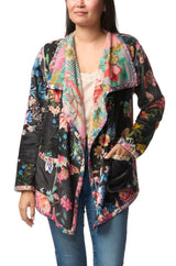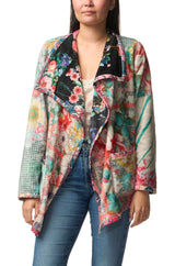 Detailed with stunning color and pattern, the Joan Wrap Sherpa Jacket is equal parts versatile and functional. Featuring a shawl collar and open front, this fully reversible jacket offers two unique designs to choose from and is finished with pockets at the sides. Layer over a silk tank and linen pants for an upscale evening out.