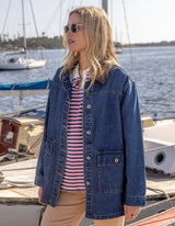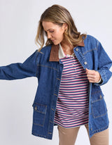 The Elm Lilian Denim Barn Jacket is a standout outer layer crafted from rigid denim. Featuring a classic cord collar and oversized fit, it’s perfect for layering over everyday outfits. Throw it over tees, dresses or sweats for effortless off-duty style.