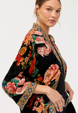 Crafted from a unique silk blend, the Merhawi Kimono is fully reversible featuring two unique patterns. Designed with an open front and drop shoulders, this kimono offers slip pockets and is finished with bold embroidery and a contrasting trim. Layer over a fitted dress and pair with metallic heels for an extravagant evening look.