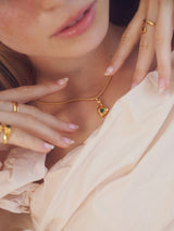 The Annasophia Necklace features an organic heart shaped pendant with an emerald coloured gem. The pendant has a clever style clip clasp so you can attach it to larger link bracelets or thread it onto just about any chain. We've added it to our popular Fernanda chain for this pairing.