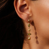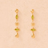 The green stone eyes of our Daphné earrings are said to bring positive energy, growth, and good luck. Adorned with a sun charm and a small dewdrop, they form a poetic celebration of nature’s brilliance.