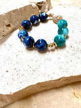 Elevate your wrist with the Eleni Bracelet—a playful pop of colour featuring turquoise and ocean blue beads kissed with gold accents. Designed to complement the Eleni necklace perfectly, this elastic bracelet works beautifully as part of a coordinated set or shines solo as a statement piece. Mix, match, and make it your own.