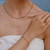 Alternating multicolored stones set on a fine chain, in vibrant shades of deep rosewood, golden yellow, and dark green. Wear it as a set with the Fruitera Autumna necklace.
