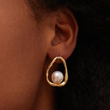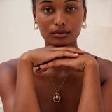 Like a setting sun on the horizon, pearls float in a halo of gold. Our Ostuni mother-of-pearl pendant earrings are a symbol of wisdom and protection.