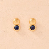 Our Petra earrings are like a starlit night sky. Featuring a delicate night blue stone beautifully contrasting with its gold surroundings, they will add a touch of mystique to any outfit.
