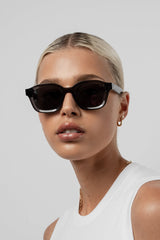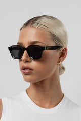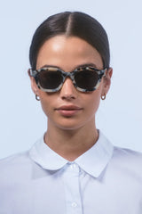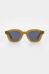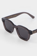 A timeless unisex silhouette brought into the present with a bolder frame, deep dish flat lenses, gold metal Isle of Eden temple trims and serrated temple ends.